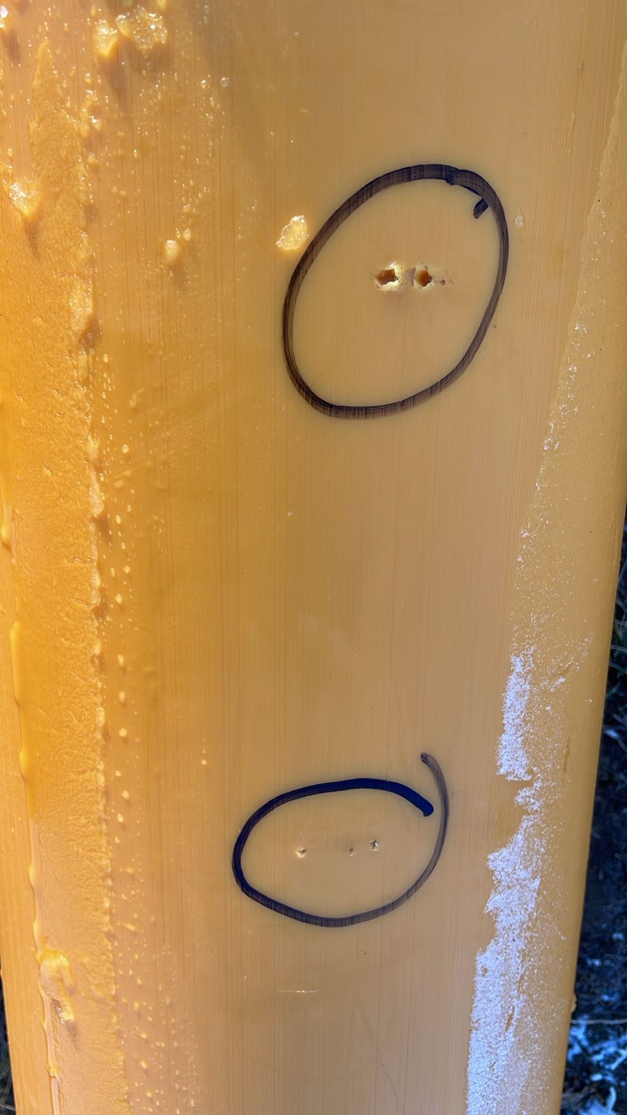 Operarios de la mencionada firma se encontraron durante la semana que dos máquinas retroexcavadoras habían sido vandalizadas y estaban con sus vidrios rotos; mientras que este sábado hallaron que la cañería PEAD de 250 mm. próxima a instalarse tenía orificios producto de que fueron perforados con clavos. También les resultó llamativo que no se registraran robos en el lugar.